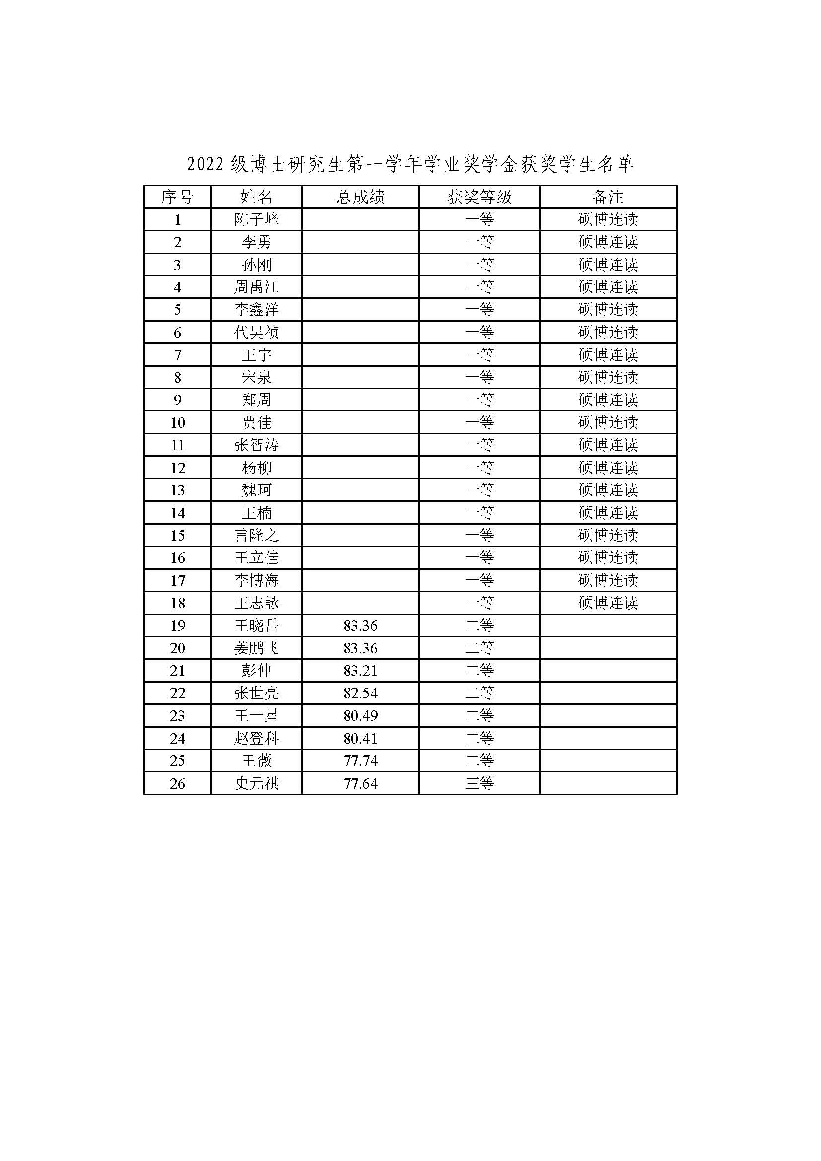 1. 2022級博士研究生第一學(xué)年學(xué)業(yè)獎學(xué)金獲獎學(xué)生名單
