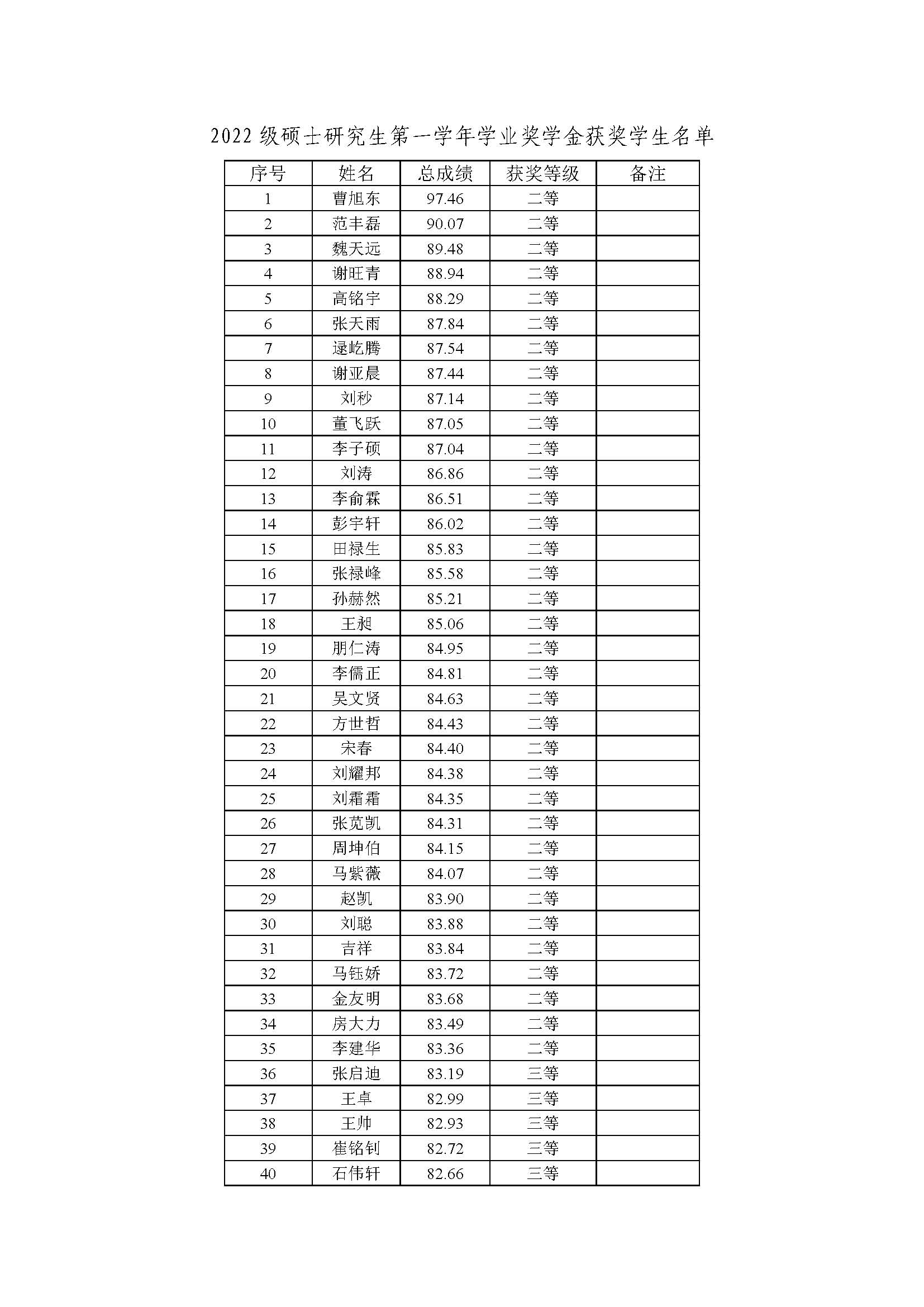 2. 2022級碩士研究生第一學(xué)年學(xué)業(yè)獎學(xué)金獲獎學(xué)生名單