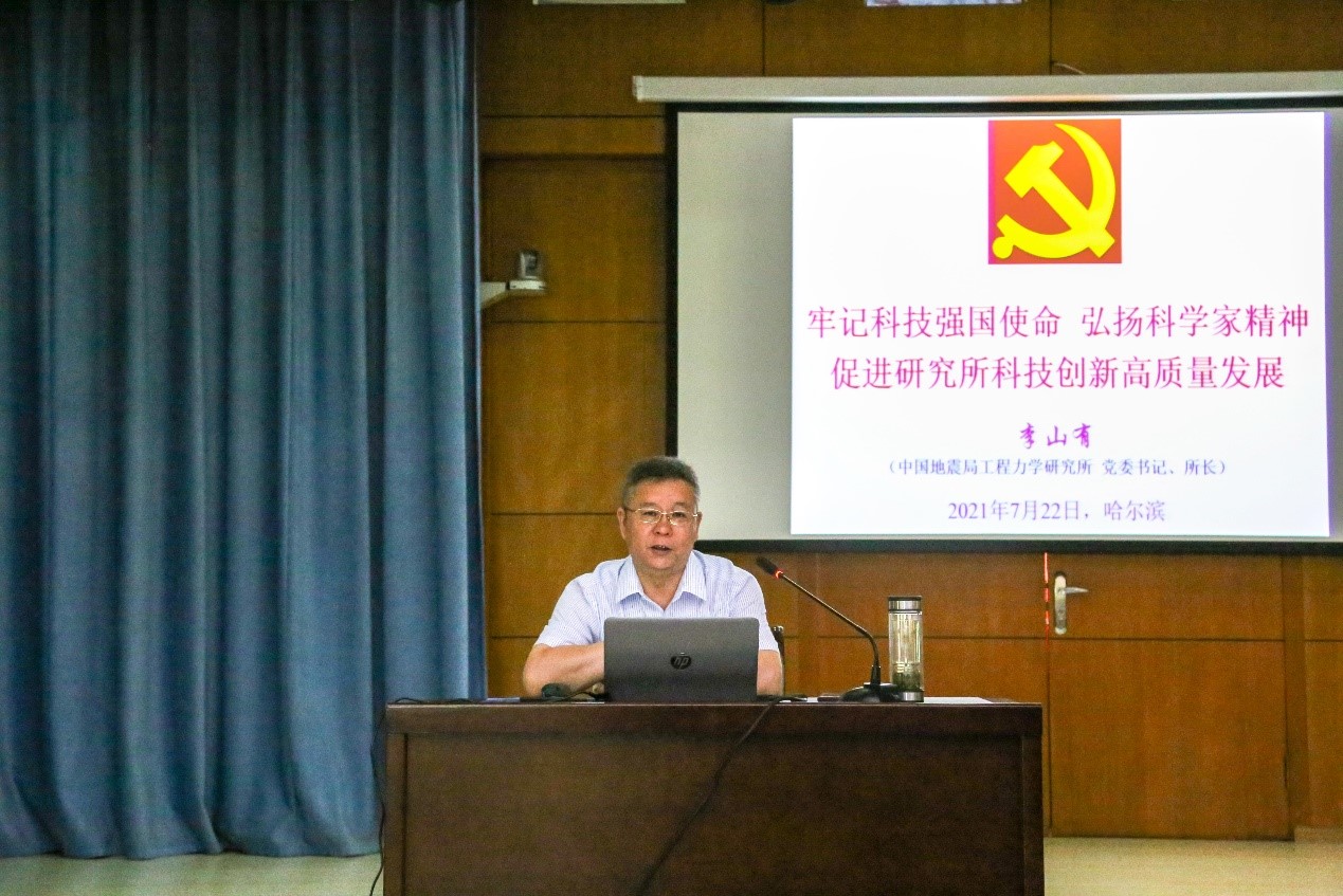 發布時間: 2021-07-27 點擊數量:58697月22日,工力所舉行黨史學習教育專題黨課報告會。工力所黨委書記、所長李山有同志以“牢記科技強國使命 弘揚科學家精神 促進研究所科技創新高質量發展”為主題向全所干部職工和學生黨員講授黨史學習教育專題黨課。