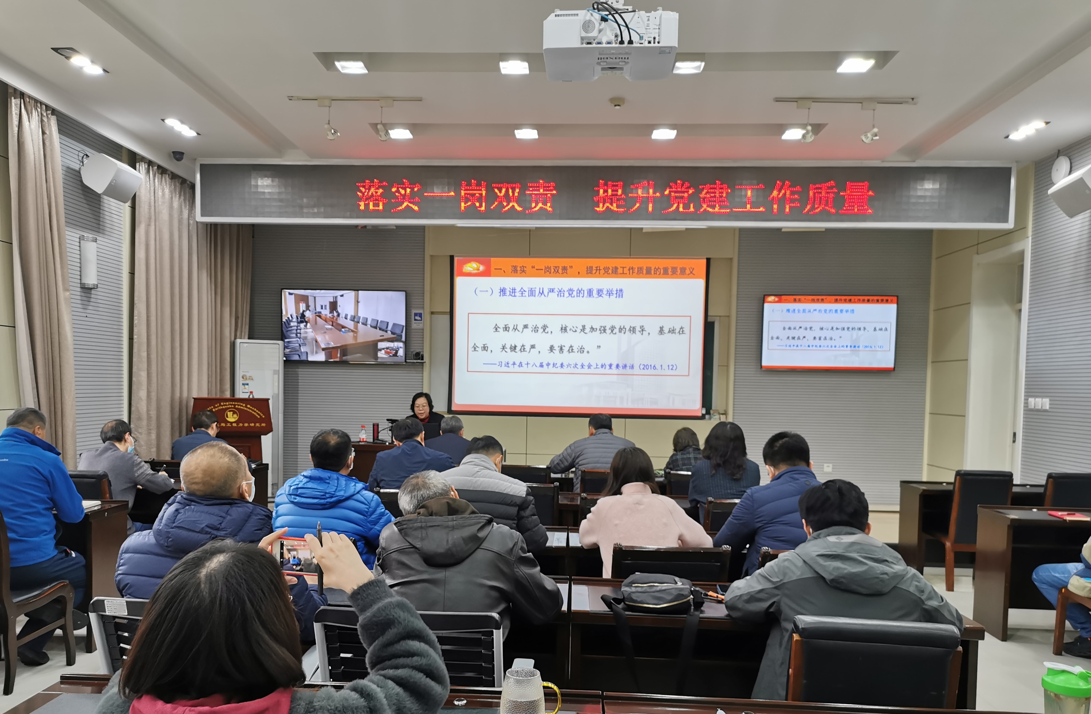 培訓由紀委書記張孟平主持,邀請黑龍江省委黨校黨史黨建教研室主任孫艷春教授為大家作《落實一崗雙責,提升黨建工作質量》專題輔導報告。黨委書記、所長李山有同志出席會議,黨員干部通過到會場聆聽和騰訊會議線上視頻的方式,近百人參加了培訓,所黨委理論學習中心組、各支部書記支委和各部門負責人全部現場參會。