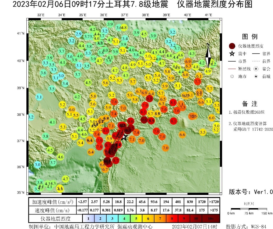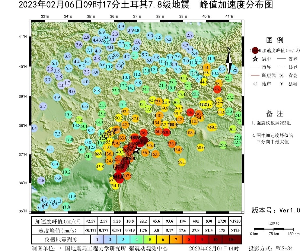 應急產出:土耳其7.8級地震強震動觀測簡報(第1報)