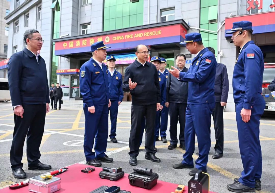 在道里區(qū)消防救援大隊,許勤了解消防救援車輛和裝備器材配備使用情況,觀摩火警處置演練,代表省委省政府向消防指戰(zhàn)員致以問候。他指出,消防救援隊伍是應(yīng)急救援主力軍,要忠實踐行習(xí)近平總書記重要訓(xùn)詞精神,圍繞全災(zāi)種、大應(yīng)急需要,加強實戰(zhàn)實訓(xùn),練就過硬本領(lǐng),保持臨戰(zhàn)狀態(tài),確保召之即來、戰(zhàn)之必勝,守護好人民安全、城鄉(xiāng)安全。