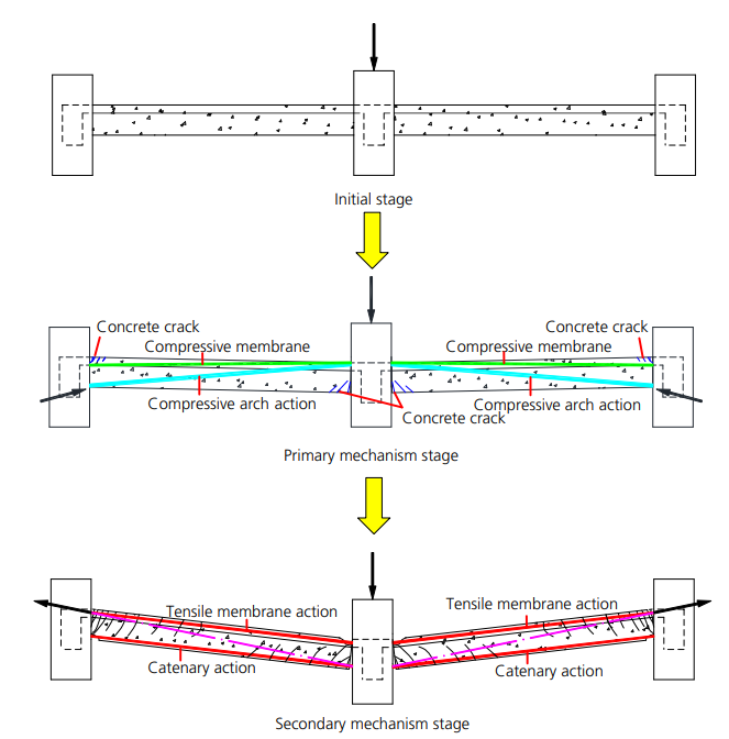 圖3 梁和樓板在2階段的倒塌機制